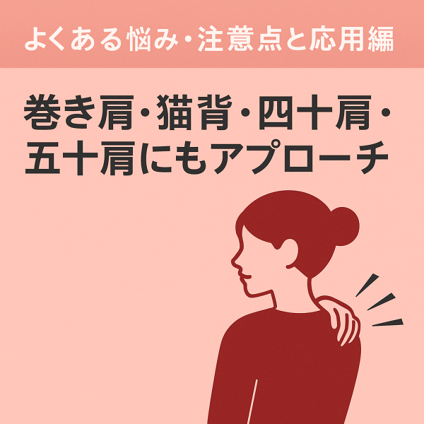 ④よくある悩み・注意点と応用編:巻き肩・猫背・四十肩・五十肩にもアプローチ