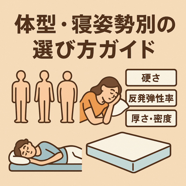 このように、硬さ・反発性・密度・厚さの4要素を総合的に判断することが大切です。「N値が高い=良い」と単純化せず、自分の体重・寝姿勢・設置環境との相性を考えて選びたいですね。