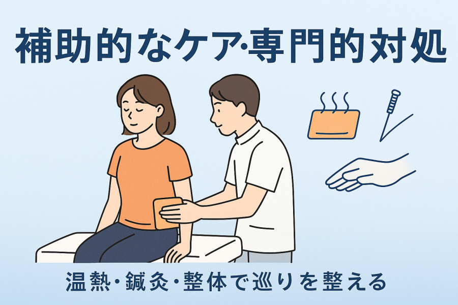 「慢性的な冷えや腰の重だるさが抜けない」という方には、整体や鍼灸の施術を取り入れるケースもあります。