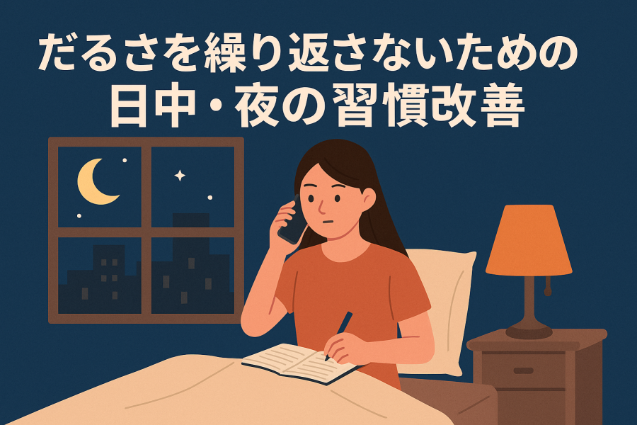 寝過ぎによるだるさを防ぐ鍵は、「夜を整えること」と「日中に動くこと」。小さな習慣の積み重ねが、結果的に“寝過ぎなくても疲れが取れる体”を作っていくと考えられています。