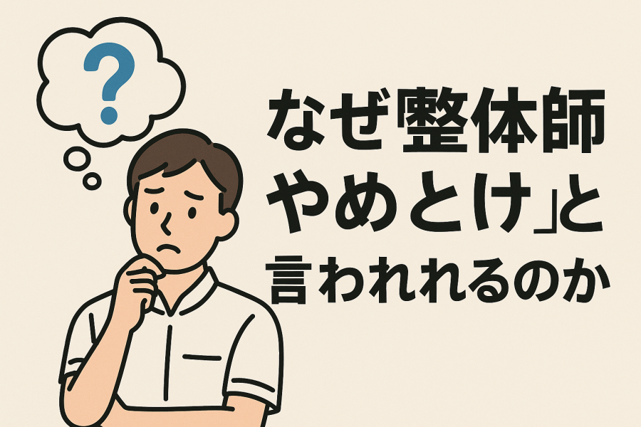 「整体師 やめとけ」という声があるのはなぜか?収入の不安・体力的負担・集客の難しさなど厳しい現実を解説しつつ、成功・継続できる整体師になるための具体的な対策も紹介します。
