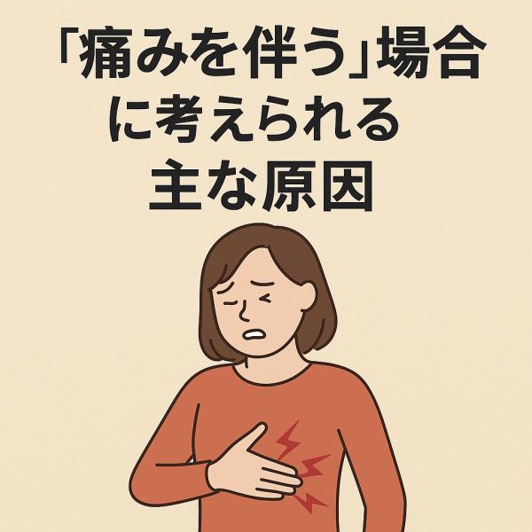症状は左右どちらかに偏ることが多く、「胸の奥が痛い」「背中まで響く」と感じることもあります。