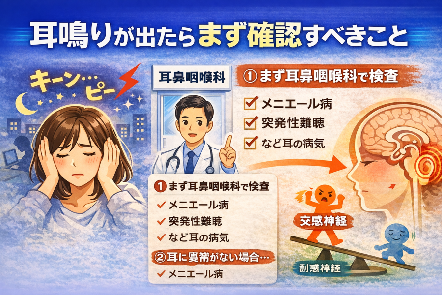 まずは耳の病気の可能性、次に自律神経の影響という流れで考えると整理しやすくなります。