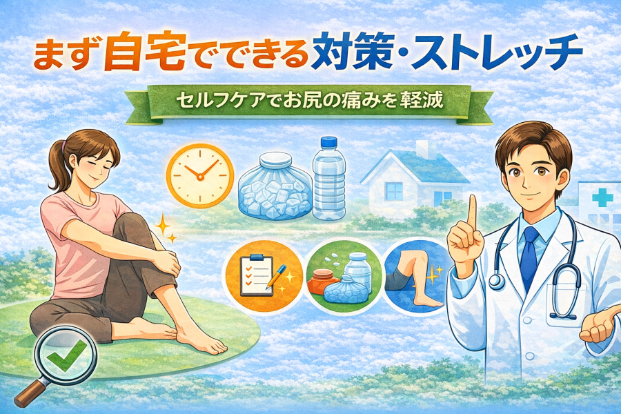 そう思ったら、まずは日常で取り入れやすいセルフケアから試してみるのが一般的だと言われています。ここでは、お尻が痛いと感じたときに自宅で取り組みやすい方法をまとめます。