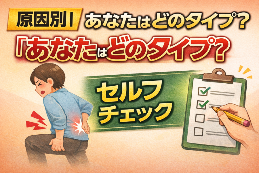 ここ、かなり大事なポイントです。実はぎっくり腰に見えても、体のどこに負担がかかっているかでタイプが分かれると言われています。