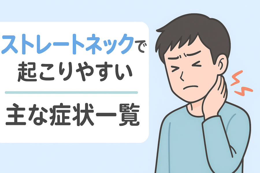 ストレートネック 症状に悩んでいませんか? 首・肩のこりや痛みだけでなく、頭痛・めまい・手のしびれ・吐き気など多彩な不調につながる可能性があります。本記事では、典型的な症状や「なぜ起こるか」のメカニズム、セルフチェック法、悪化を防ぐ生活習慣までわかりやすく解説します。