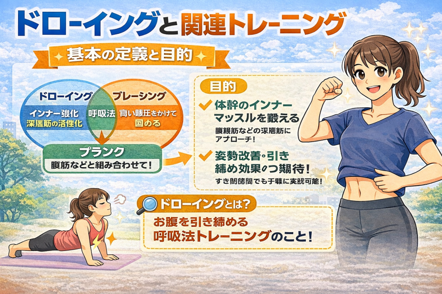 ドローイングとはお腹をへこませながら呼吸し体幹(インナーマッスル)を鍛えるトレーニングです。初心者向けに効果・やり方・注意点までわかりやすく解説します。
