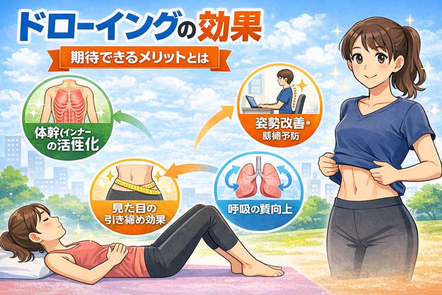 ドローイングでは、腹横筋や横隔膜といった体幹を支える筋肉が意識しやすくなり、姿勢を保ちやすくなったり、腰への負担が軽くなることがあると言われています。ハードな運動が苦手な人でも取り入れやすい点が、注目されている理由の一つです。