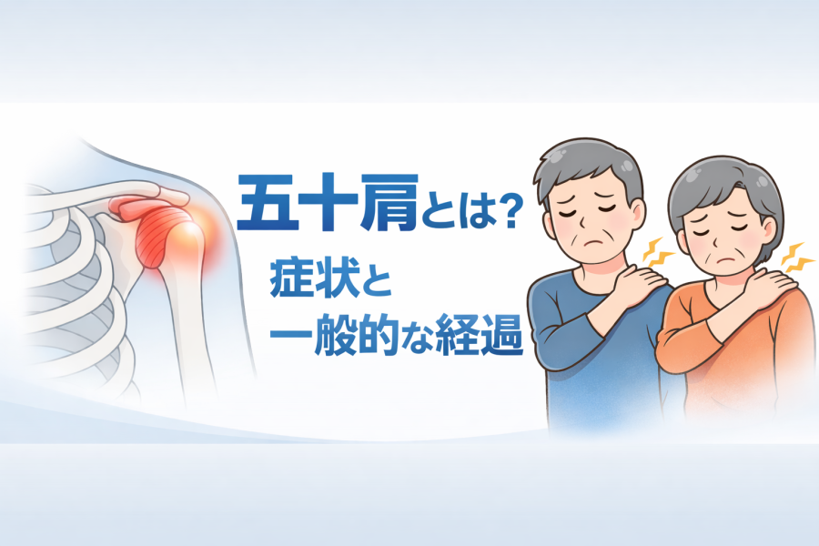 整形外科などでは、レントゲンで骨に異常がないことを確認しつつ、動かしたときの痛みや可動域の制限を触診で確認して五十肩が疑われると言われています。転倒やケガがないのに肩が痛く、動きも悪い状態が続く場合は、一度専門家に相談するのが安心です。