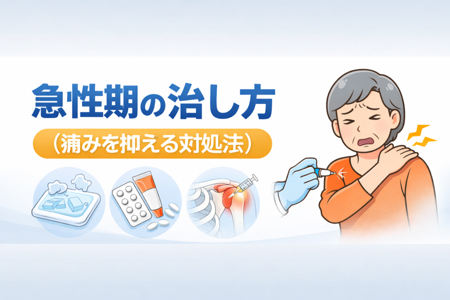 急性期では、消炎鎮痛剤や湿布を使って痛みを和らげる方法が一般的に行われていると言われています。痛みが強い場合には、医療機関で注射による対応が検討されることもありますが、これは炎症を一時的に抑える目的だと説明されることが多いです。