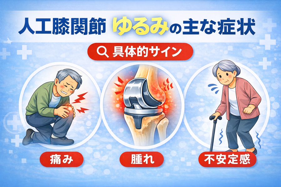 ChatGPT Image 2026年2月3日 21_21_59「これって年のせい?」と迷いやすいのが、人工膝関節のゆるみの症状です。実は、いくつか共通しやすいサインがあると言われています。日常の動きの中で感じる小さな違和感が、ヒントになることも多いようです。