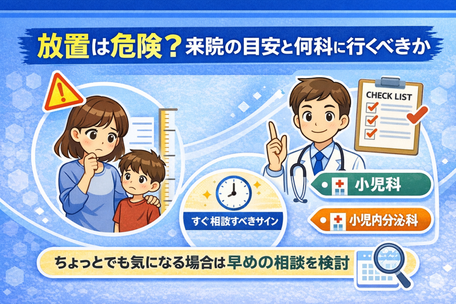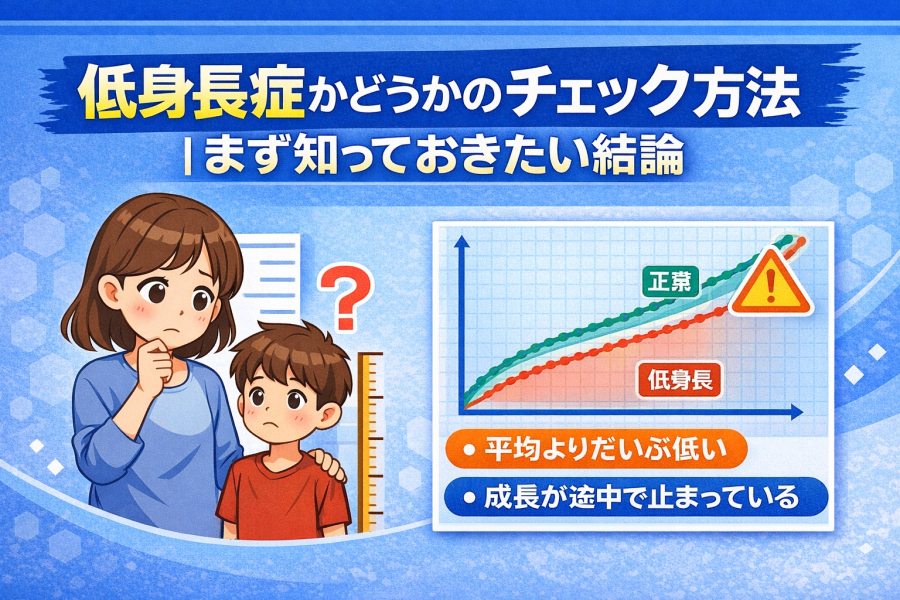 低身長症のチェックで最初に見るべきなのは、「今どれくらい低いか」と「どのくらい伸びているか」の2点です。単純に小さいだけでなく、成長のスピードが落ちているかどうかが重要な判断材料になるとされています。