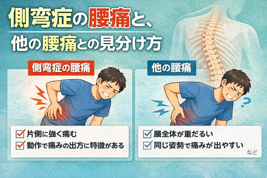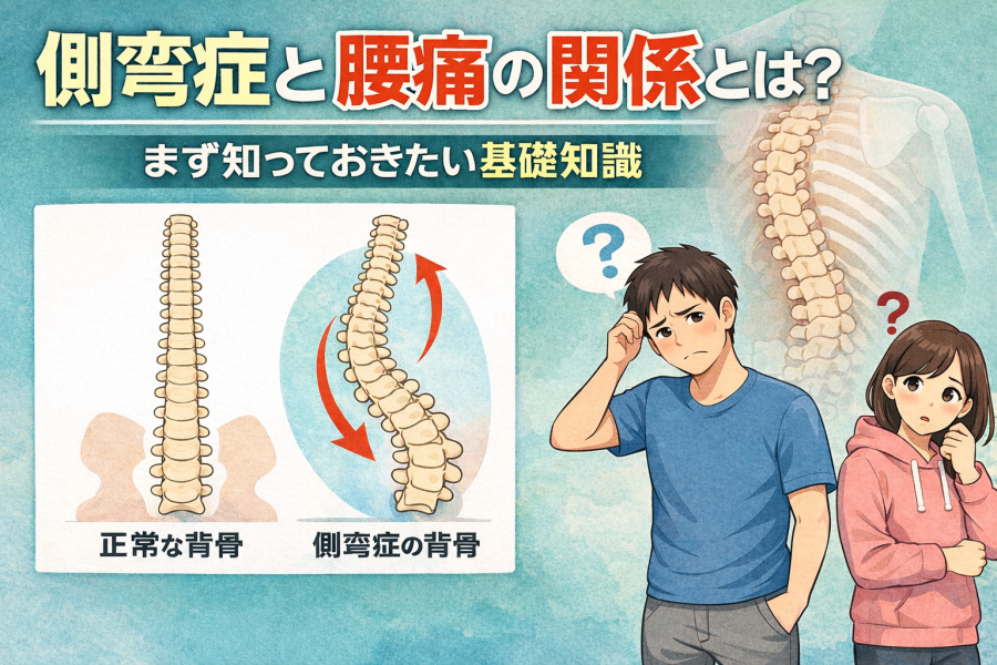 側弯症 腰痛で悩んでいませんか?背骨の歪みと腰痛の関係、痛みが出やすい人の特徴、セルフケアの考え方から来院目安までを分かりやすく解説します。