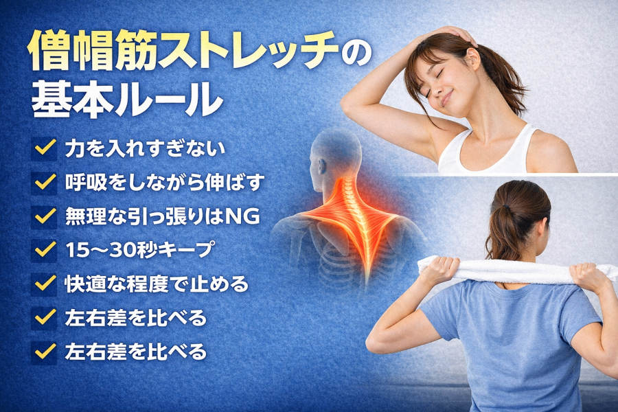 ChatGPT Image 2025年12月28日 10_29_52「僧帽筋ストレッチって、自己流でやっても大丈夫?」