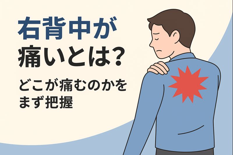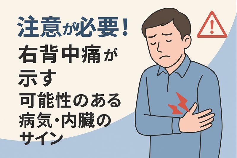 右背中痛いと感じる方へ|筋肉の疲労や姿勢不良から、内臓疾患のサインまで、痛みの原因を分かりやすく解説。症状別の対処法や受診の目安も紹介します。