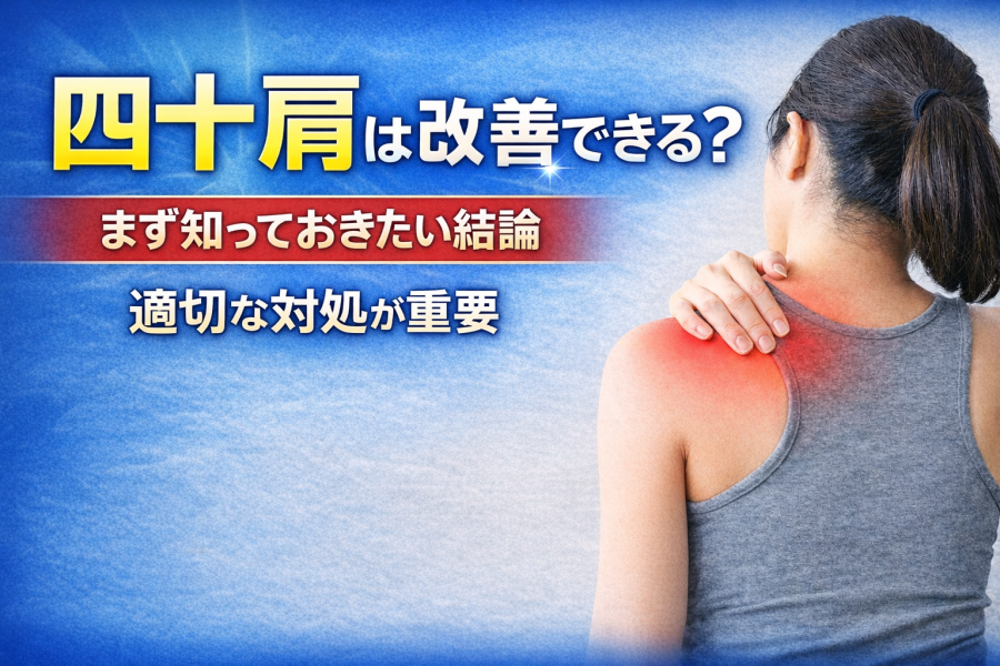 四十肩 改善を目指す方へ。なかなか治らない原因、症状別の正しい治し方、今すぐできるセルフケア、やってはいけないNG行動、受診の目安まで専門的に分かりやすく解説します。
