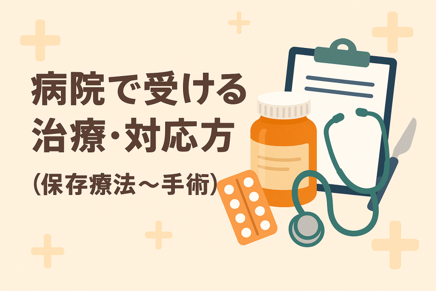 保存療法の場合、週1〜2回の通院を数か月続けることが多く、改善までの期間は個人差があります。一般的には半年〜1年程度で症状が落ち着くケースが多いと言われています。
