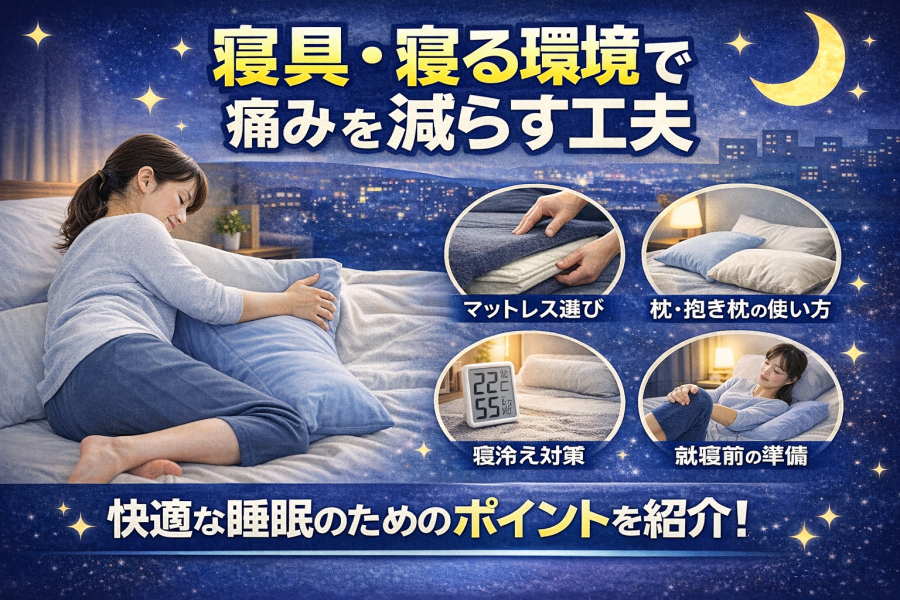 さらに、日中の姿勢や長時間の座り姿勢による負担が、夜になって表に出てくることもあるようです。「昼は仕事で無理してたかも…」と思い当たる方、意外と多いのではないでしょうか。