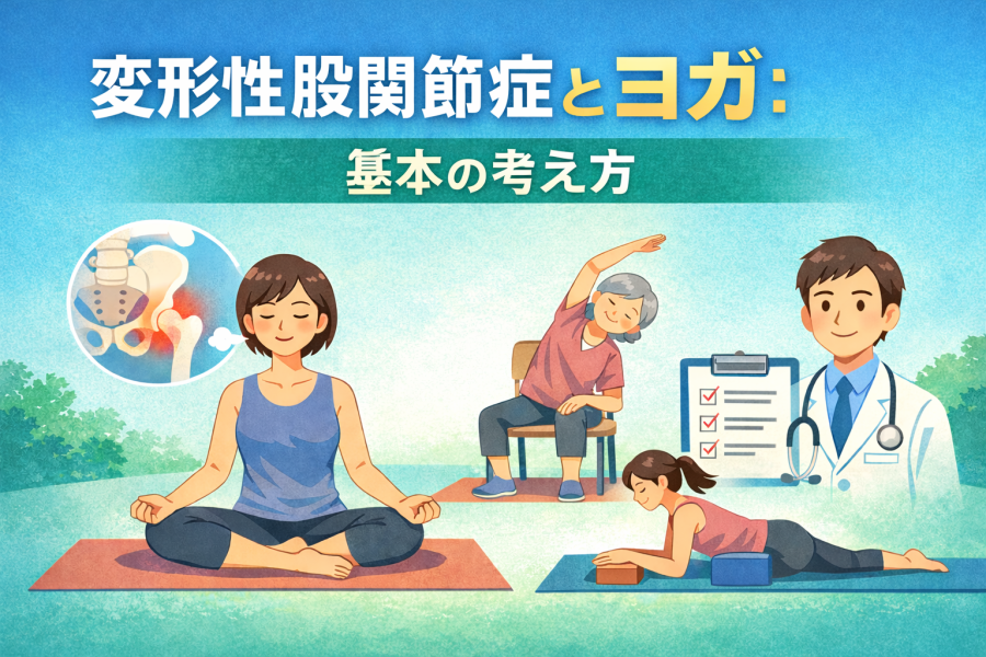 変形性股関節症 ヨガの効果と注意点を徹底解説。安全に実践できるポーズや悪化リスクを避ける方法、専門家がおすすめする運動法をまとめました。
