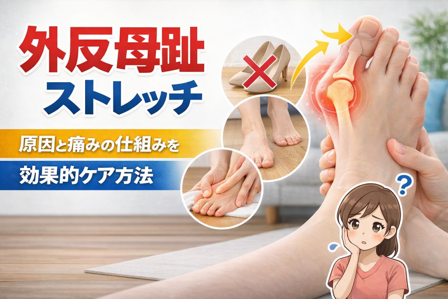 外反母趾 ストレッチの基本と効果を徹底解説。痛みの原因・おすすめのストレッチ・注意点・セルフチェック方法まで、自宅で安全にできるケア方法をわかりやすく紹介します。
