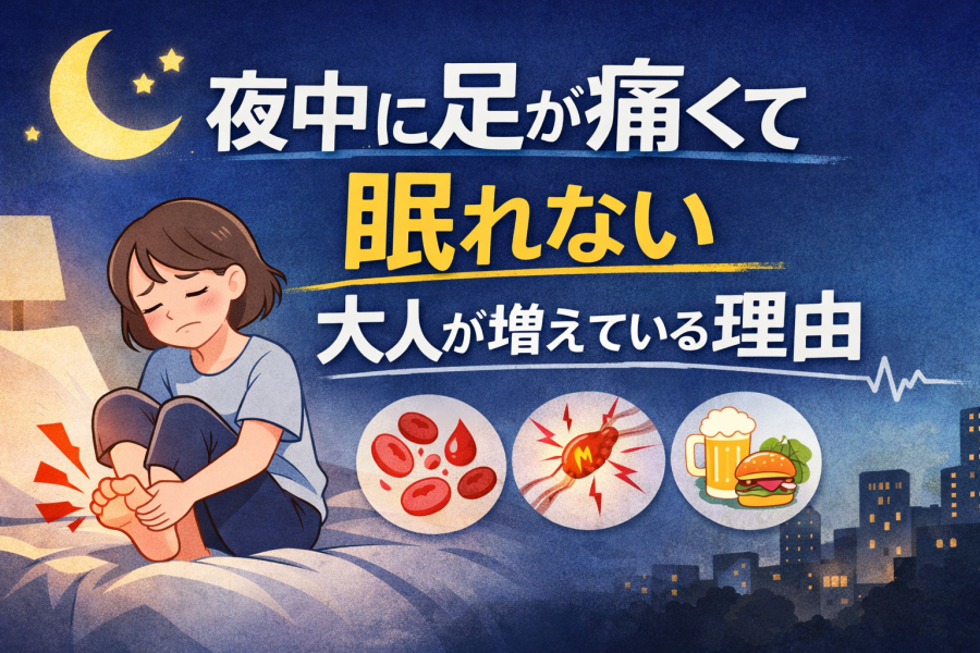 夜中 足が痛い 寝れない 大人が増えています。原因は血行不良・神経のトラブル・筋肉疲労・病気のサインなど多岐にわたります。この記事では、大人に多い原因と今すぐできる対処法、放置してはいけない症状、受診の目安をわかりやすく解説します。