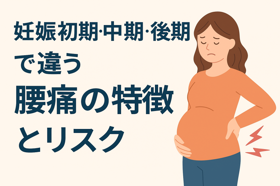 妊婦 腰痛に悩む方へ。妊娠初期・中期・後期で変わる腰痛の原因、安全にできるセルフケア、注意すべき症状、受診すべき目安をわかりやすく解説。無理のない対策で不安を軽減するためのガイドです。