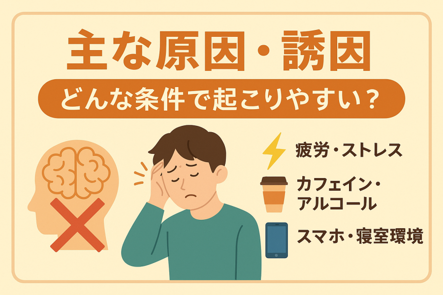 特定のきっかけ(夜更かし・カフェイン・アルコールなど)で出る