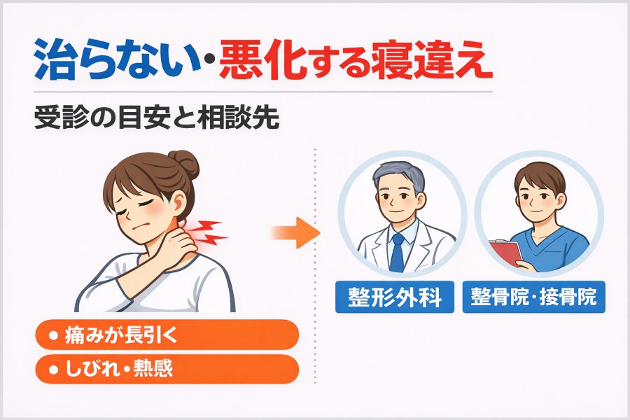 寝違えと思っていた症状の裏に、別の要因が隠れているケースもあるため、早めに来院を検討する目安になるとされています。