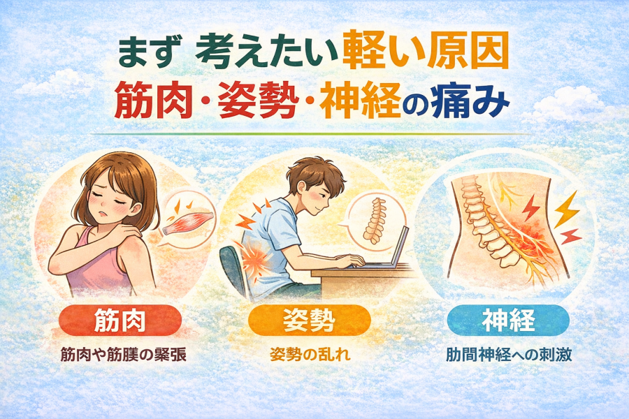 まず考えたい軽い原因:筋肉・姿勢・神経の痛み