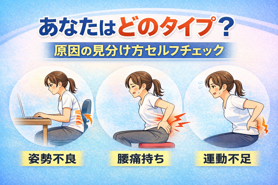 ChatGPT Image 2026年3月19日 00_56_05「座ると腰が痛いけど、自分はどのタイプなんだろう?」