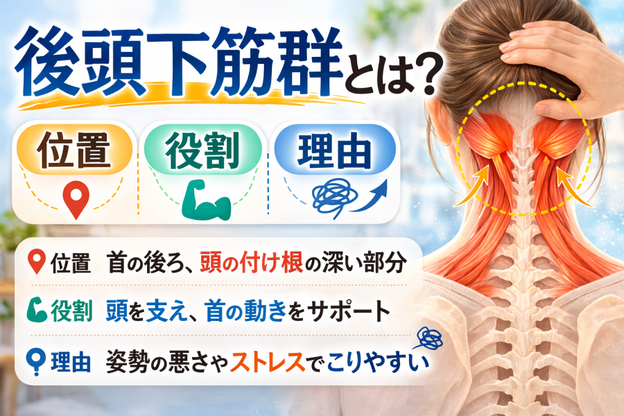 もし当てはまる項目が多い場合は、後頭下筋群へのアプローチを意識してみるのも一つの方法です。