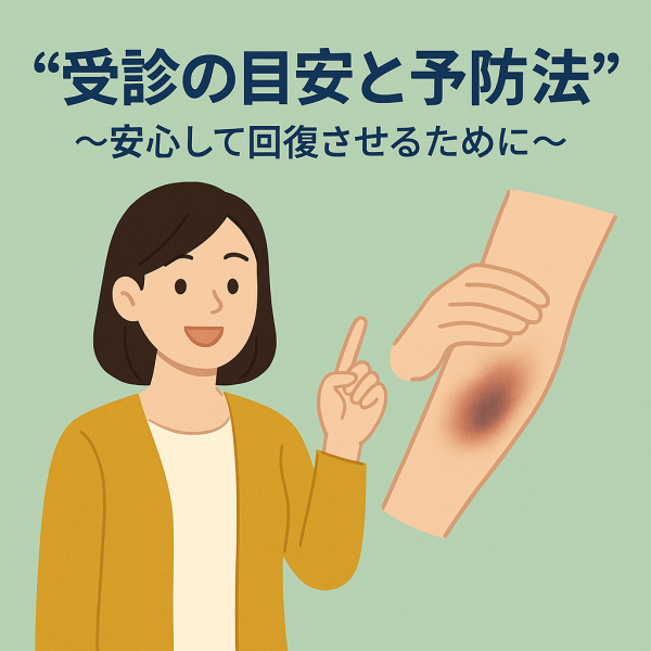 打撲 早く治すには、受傷直後の“正しい応急処置”がカギ。冷却・圧迫・挙上のポイントから、腫れ・内出血を最小限に抑える生活習慣、さらに「いつ病院へ行くべきか」まで、専門院の知見をもとにわかりやすく解説します。