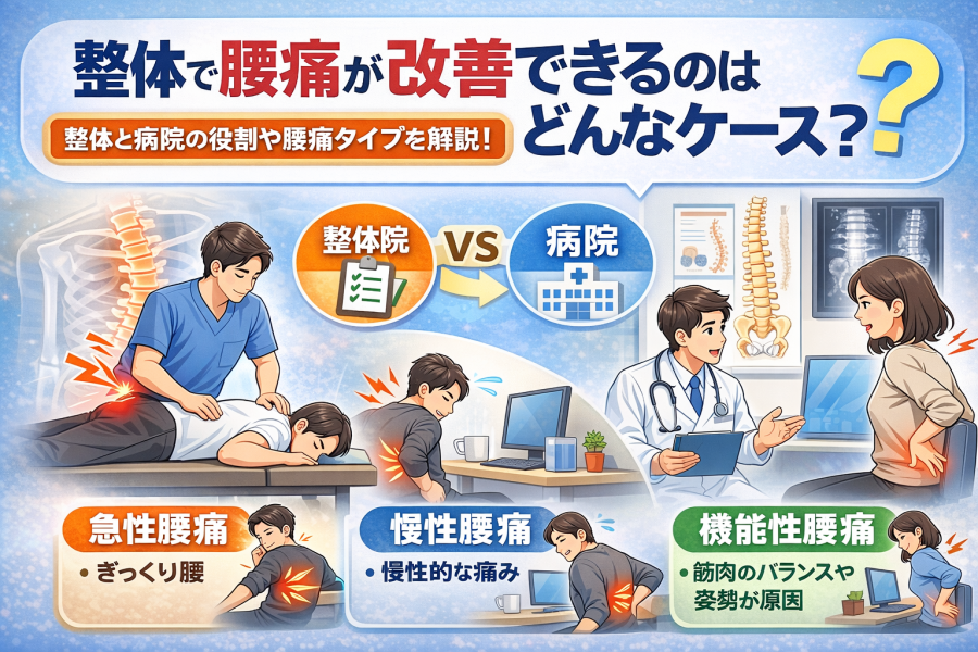 まず病院で検査を受け、その後の選択肢として整体を検討する流れも、一つの考え方とされています。