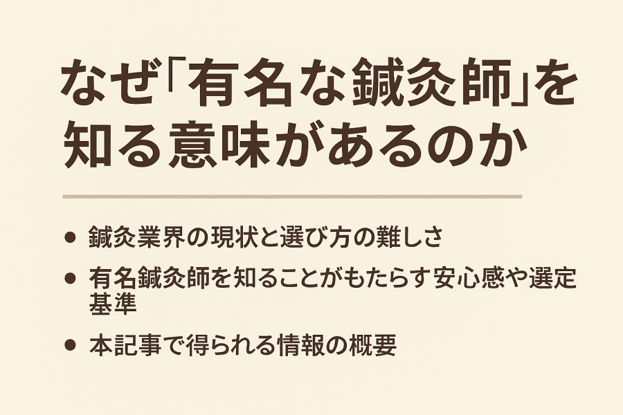 はじめに:なぜ“有名な鍼灸師”を知る意味があるのか