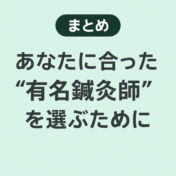 まとめ:あなたに合った“有名鍼灸師”を選ぶために