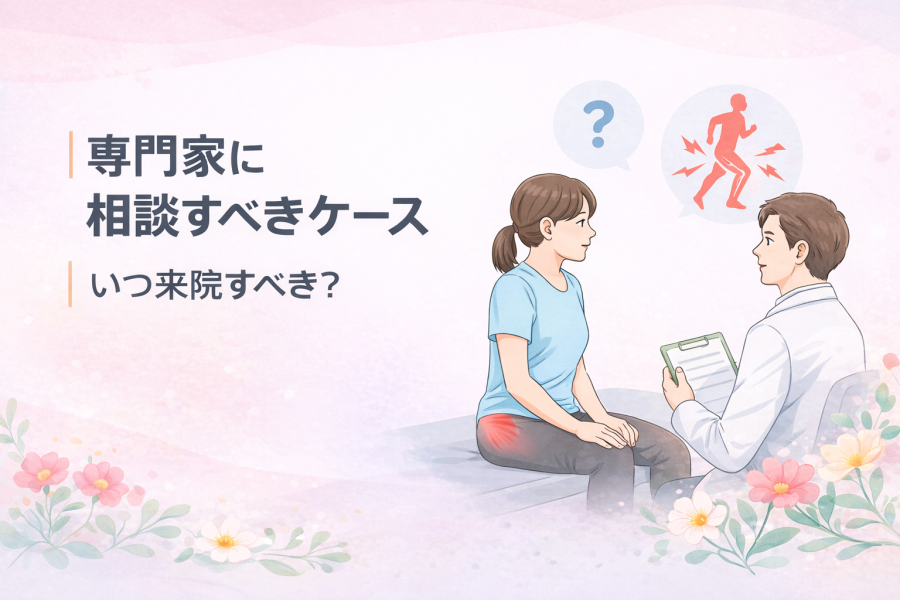 「仕事に集中できない」「長時間座れない」など、日常生活に影響が出ている状態は、セルフケアだけでは対応しづらいケースがあるとされています。