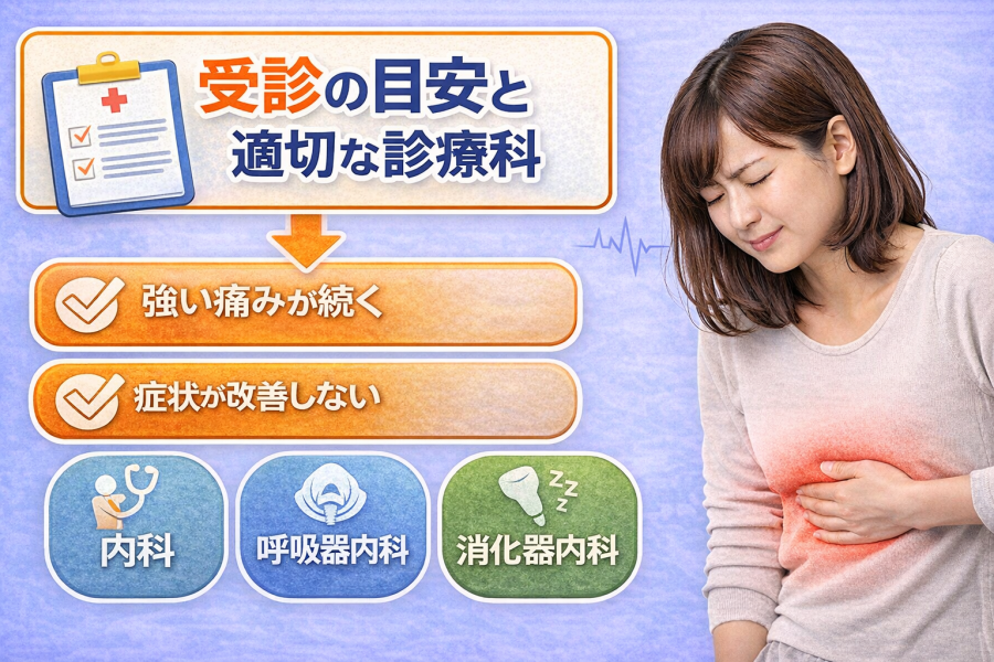 横隔膜そのものだけでなく、内臓や呼吸器系の影響が関係している可能性もあるため、無理に我慢せず来院を検討する判断材料になると考えられています。