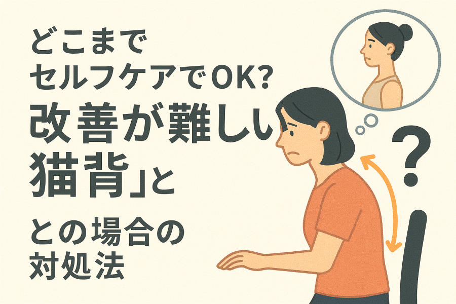 セルフケアで改善しやすい猫背 vs 注意が必要なケース(慢性的な痛み、骨格の歪み、腰の反りすぎなど)