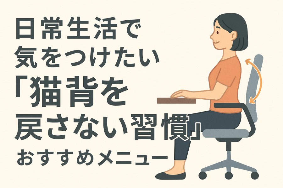 猫背 治し方に悩むあなたへ。自宅で簡単にできるストレッチ・筋トレ、姿勢チェックの方法、生活習慣の見直しまで解説。肩こり・腰痛の予防も目指せる、今日から始められる実践ガイド。