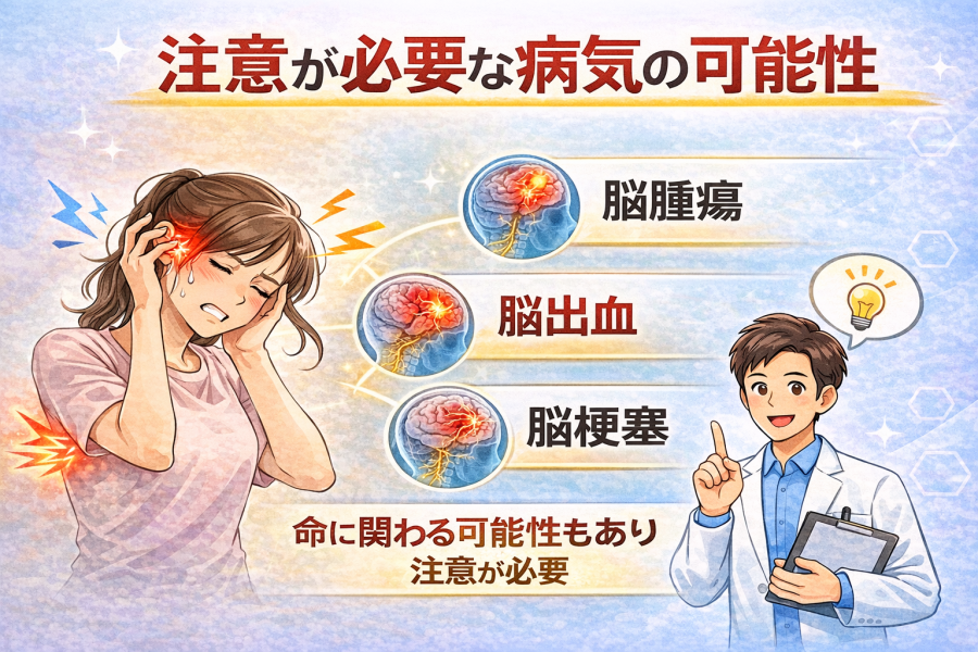 耳鳴り・頭痛・肩こりが同時に出てくると、「もしかして何かの病気なのかな…?」と不安になる方も多いです。もちろん、生活習慣や姿勢の影響で起こるケースもありますが、なかには医療機関での相談が必要とされる病気が隠れている場合もあると言われています。MEDLEYや福島孝徳記念クリニックでも、耳鳴りや頭痛の背景には複数の疾患が関係することがあると紹介されています(引用元:⭐︎参考記事 https://medley.life/、https://fukushima-nouge.com/)。 (medley.life in Bing)