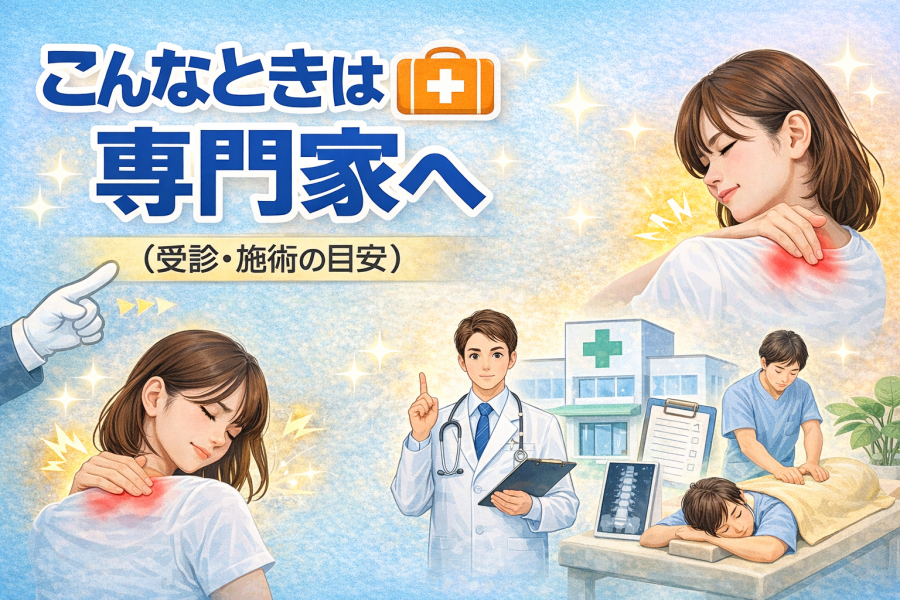 専門家のサポートは、肩こりの背景を整理し、改善を目指すためのヒントになると言われています。無理に一人で抱え込まず、「これはいつもの肩こりと違うかも」と感じたタイミングで相談する姿勢が安心につながるようです。