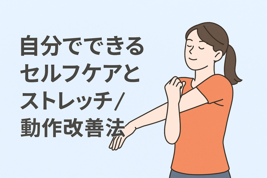 こう考える方は少なくありません。実際、日常の工夫や簡単なストレッチで、違和感が和らぐこともあると言われています。ここでは自宅や仕事中に取り入れやすいセルフケアを紹介します。