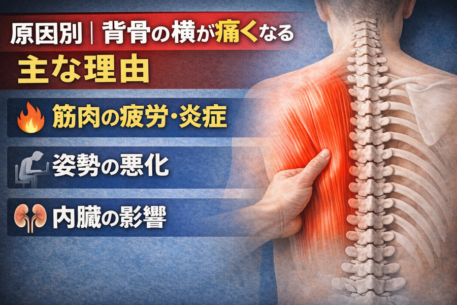 「背骨の横の筋肉を押すと痛いけど、結局なにが原因なの?」と気になりますよね。