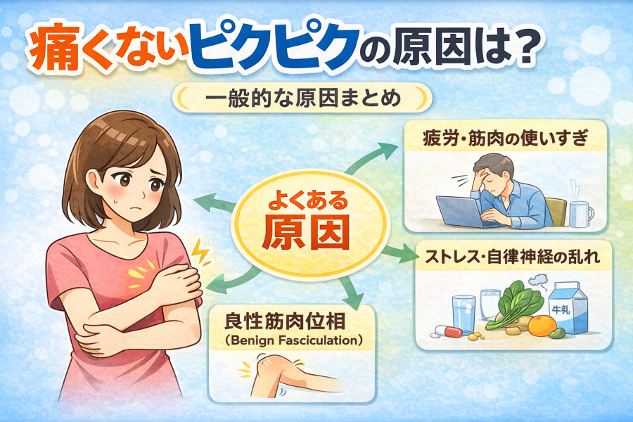 一方で、痛みがないピクピクは、筋肉がごく軽く反応している状態と考えられるケースが多いとされています。