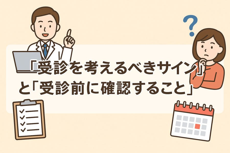 ここでは、「来院を検討すべきサイン」や、「受診前に準備しておきたいこと」などを、実際の医療現場で重視されているポイントに沿って整理します。