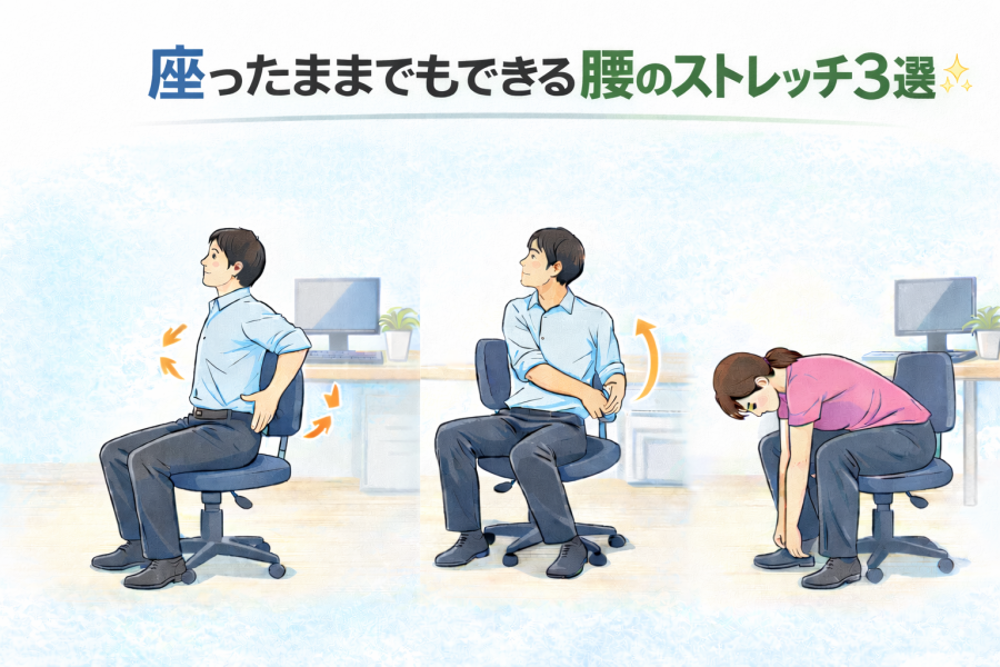 ④座ったままでもできる腰のストレッチ3選(検索意図:オフィス・日常)