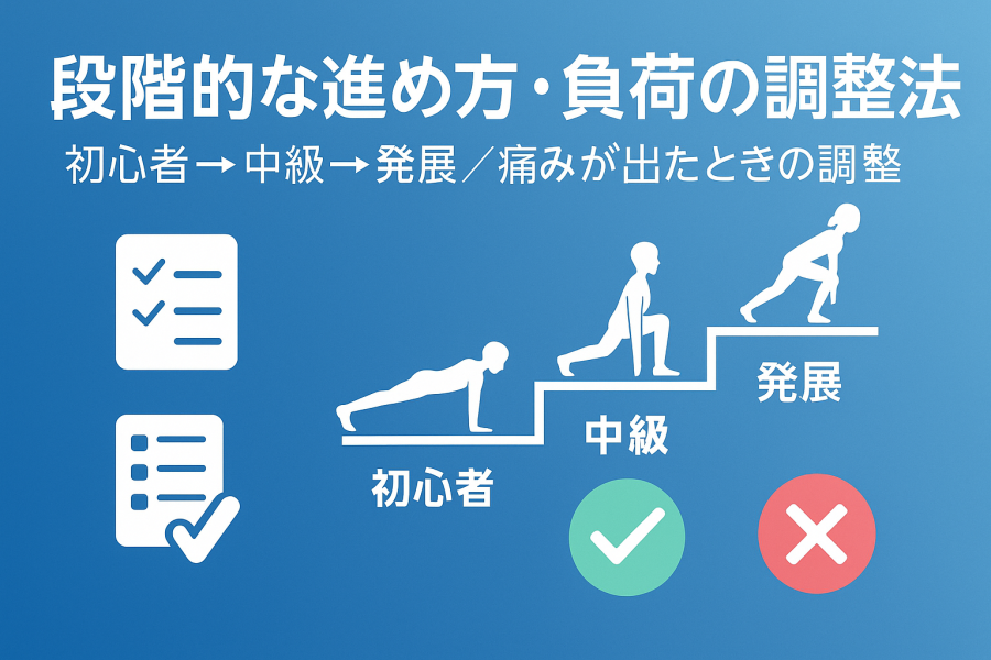「腰椎すべり症の筋トレ、どのくらいの強さでやればいいの?」と疑問を持つ方は多いです。実際、同じ症状でも進行度や体力によって適切な負荷は違うと言われています。ここでは初心者から中級者、さらに発展させたい方まで、段階的に調整する考え方をまとめました。