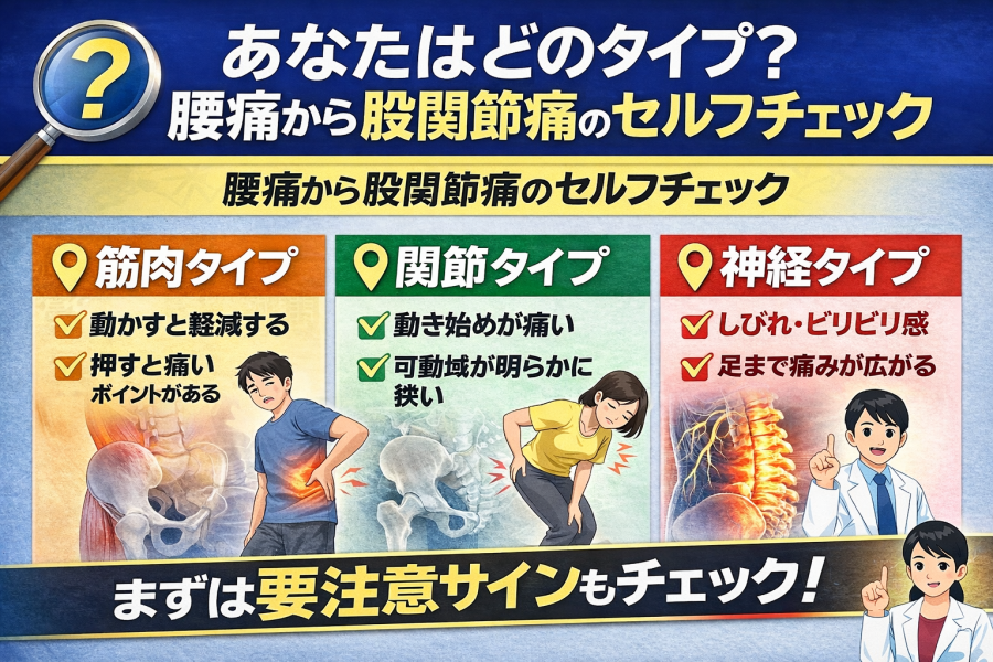 あなたはどのタイプ?腰痛から股関節痛のセルフチェック
