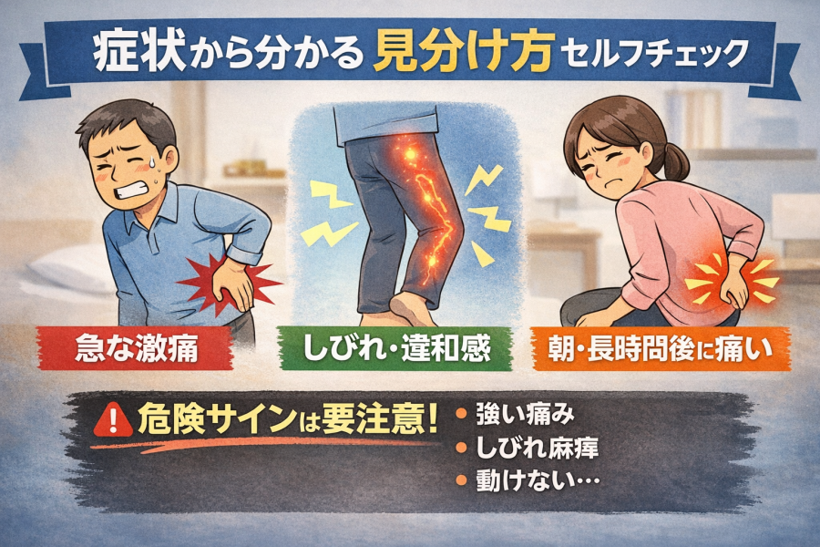 つまり、「ただの腰痛かな」と思っていても、原因の種類によって対応が変わる可能性がある、ここが大事なポイントです。