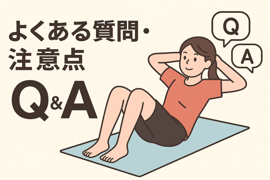 最初に気をつけたいのがフォームと無理のない回数設定です。反動を使って勢いで体を起こすと、腹筋ではなく首や腰に負担がかかることがあります。回数よりも「ゆっくりと正しい姿勢で行う」ことが大切とされています。